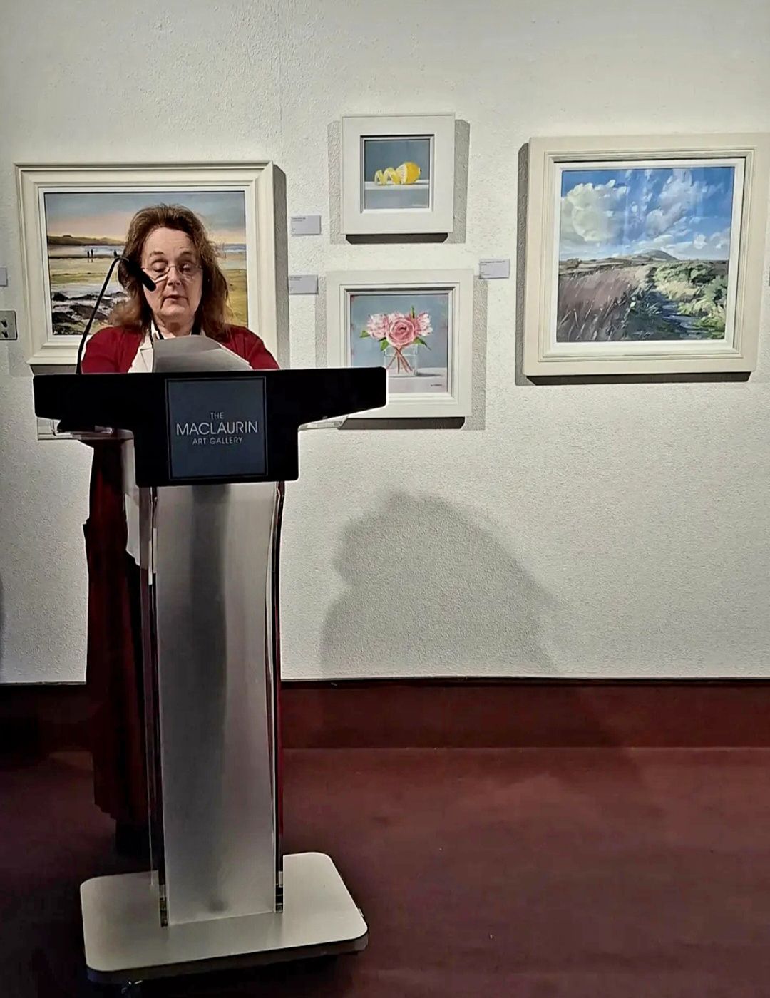 President of Ayr Sketch Club - Janette Coughtrie - opening the show. (Image courtesy of Ayr Sketch Club)