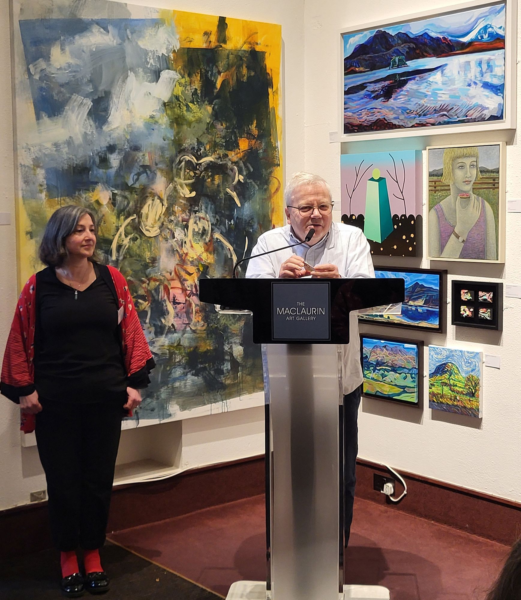 This exhibition FUTURE FOLKLORE: THE ART AND CRAFT OF STORYTELLING has over 300 pieces of contemporary art on display and, as a result, we also had a very busy Private View! The exhibition was opened by Chair of the Maclaurin Trust, John Walker, along with Amanda Airey, Trustee of Visual Arts Scotland.